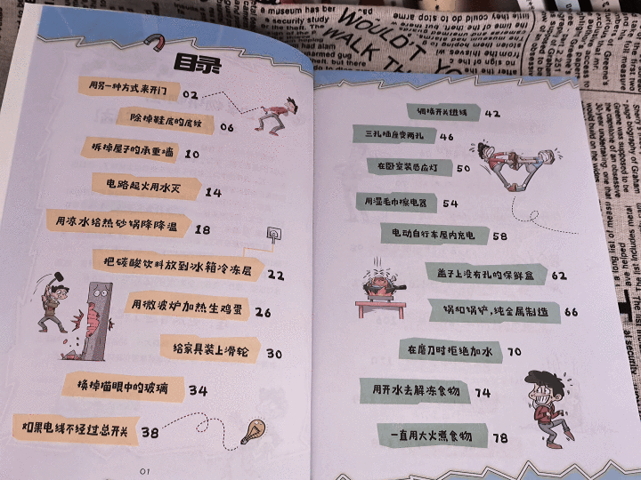 二寶趕緊拿來《如果和物理對著干》指著上面說“你看,這上面都說了,你不信我”。那一刻我突然明白,讓孩子學點生活的技巧太有必要了,二寶雖然沒有讀懂其中的科學原理,但是他明白了這危險的事不能做。