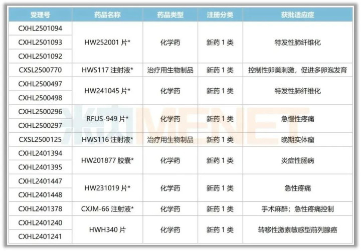 人福醫(yī)藥今年在國內(nèi)新獲批臨床情況(資料來源:米內(nèi)網(wǎng))