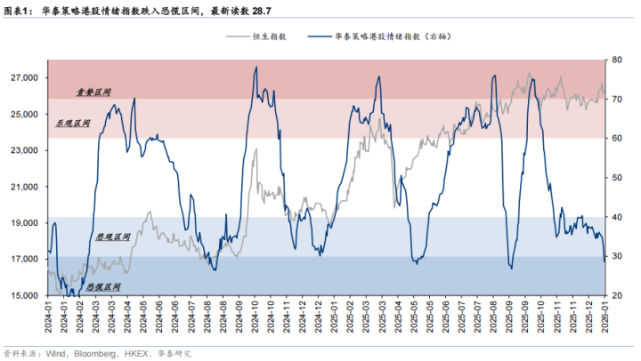 根據(jù)華泰證券的研報(bào),1月9日港股情緒指數(shù)回落至28.6,時(shí)隔四個(gè)月再次落入"恐慌區(qū)間"(