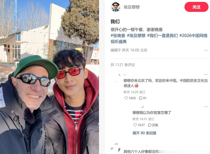 首先是張晚意,穆穆和張晚意一起吃了飯,兩人還合影留念,穆穆配文:我們。短短兩個字,誰看了不淚目。“我們”是一種跨越山河和跨越國界的友誼的認同,是一種不分你我,有共同信念的人的合拍,是不因時間和空間而澆滅的真誠與熱情。