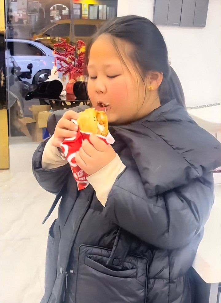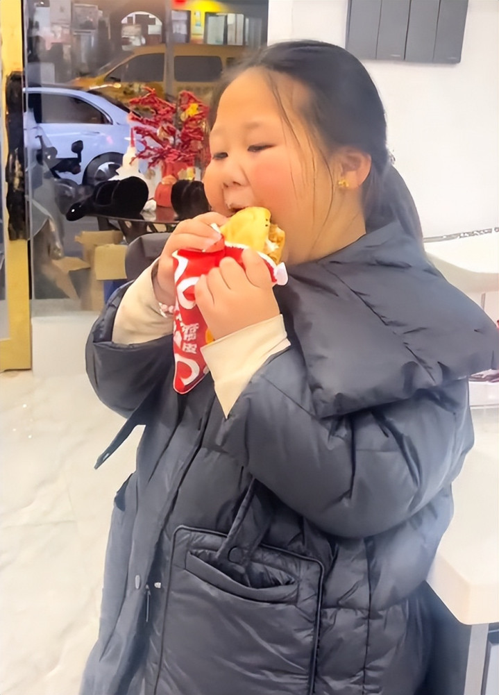 可以看到是一個胖乎乎的孩子。但問題是她今年才90斤,剛上小學一二年級就已經變成小胖墩了,以后肯定會影響后續的發育。