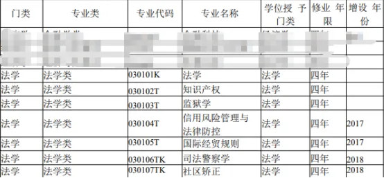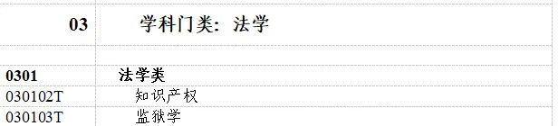 第二是法學(xué)類專業(yè),包含若干個專業(yè),2012年教育部的專業(yè)目錄里包含三個專業(yè),法學(xué)還有兩個特設(shè)專業(yè)知識產(chǎn)權(quán)、監(jiān)獄學(xué)。